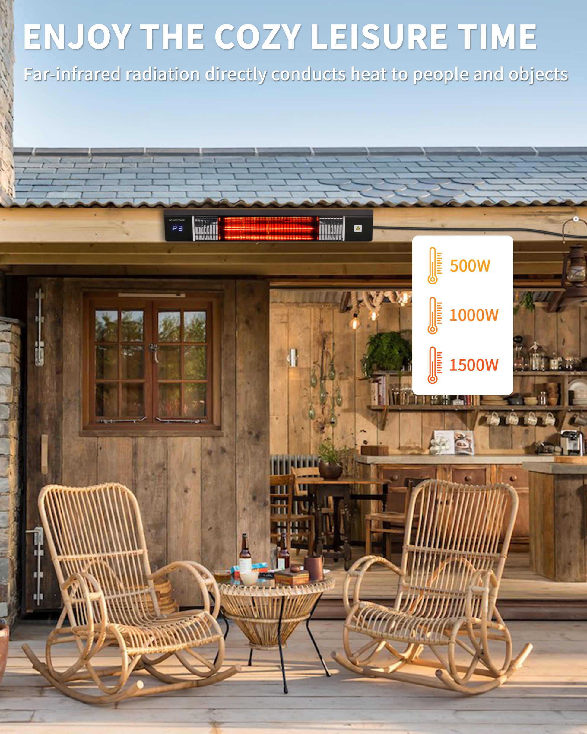 - Silent Operation: The patio heater operates in absolute silence. Without the need for a noisy fan, it solely utilizes light for heating, making it an ideal choice for noise-sensitive areas. It not only promotes undisturbed sleep but also boosts metabolism, perfect for families with children, the elderly, and those health-conscious